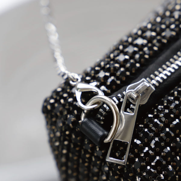 バッグ全体に施されたビジューが煌めくトレンドライクなバッグ。