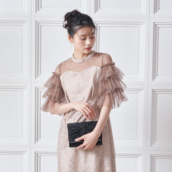 196597 V字金具ラインストーン付サテンクラッチバッグ