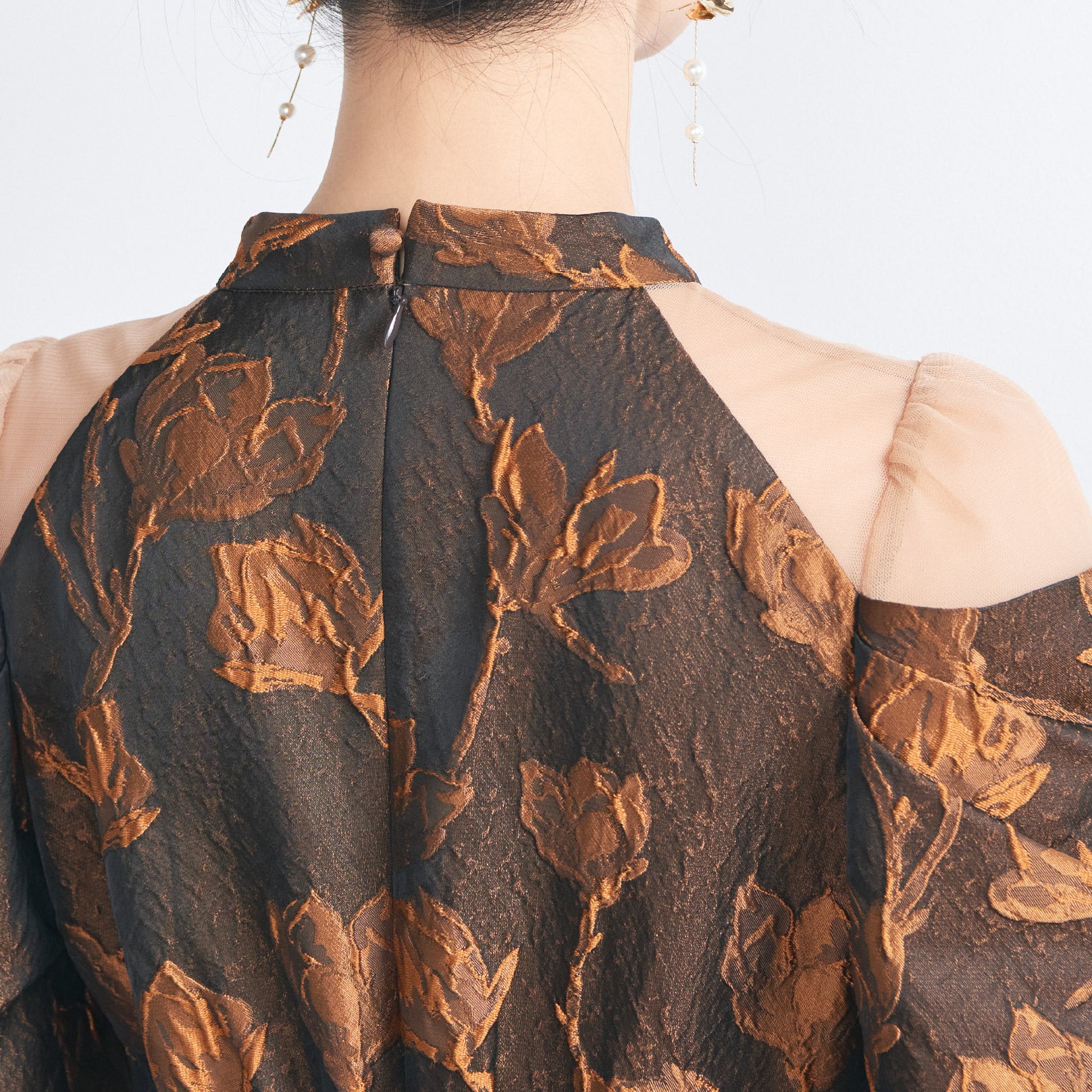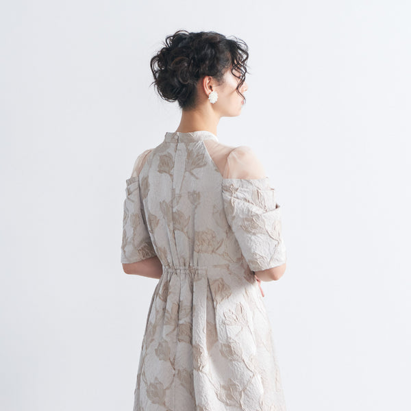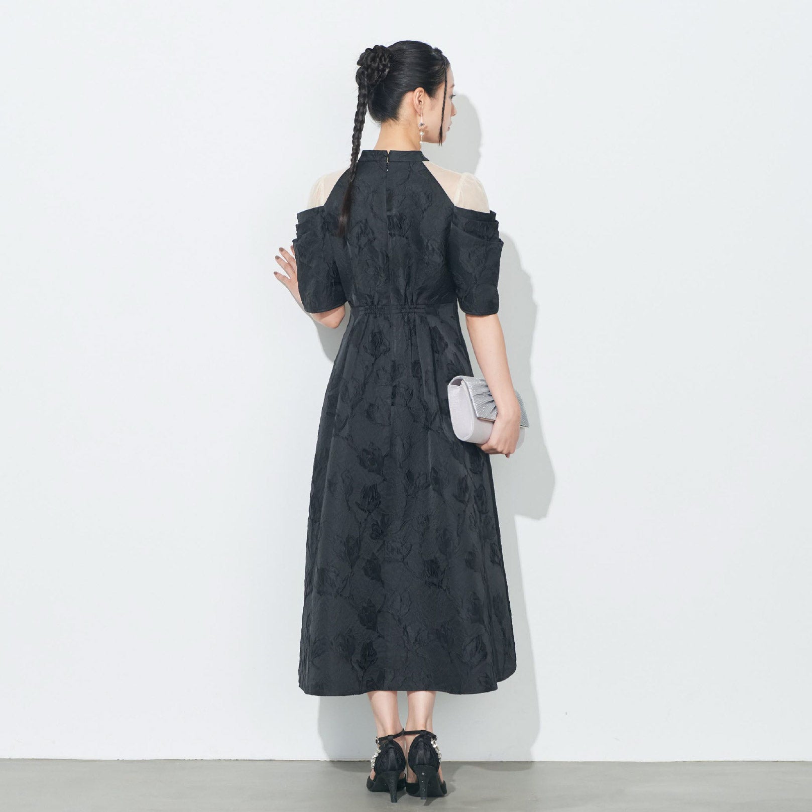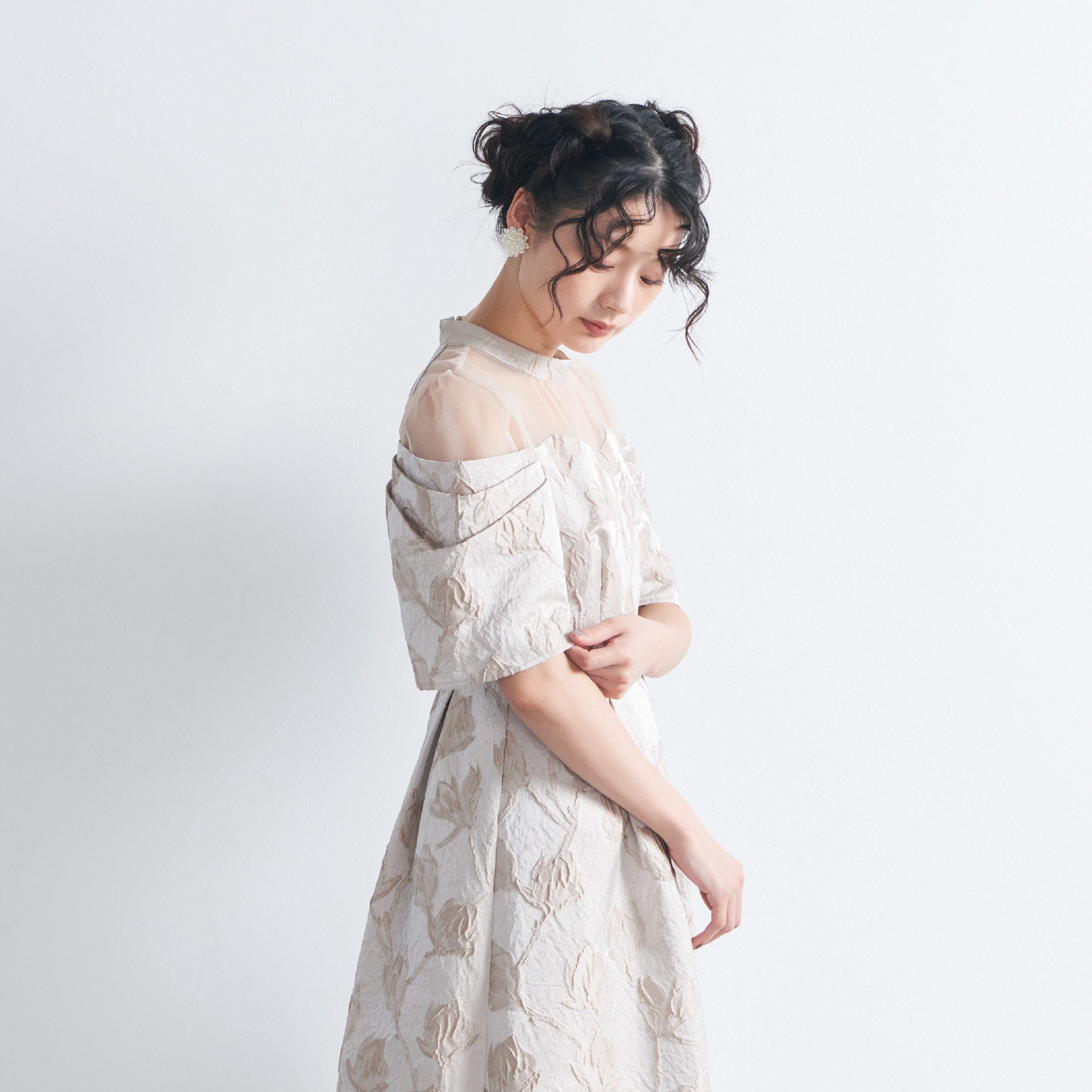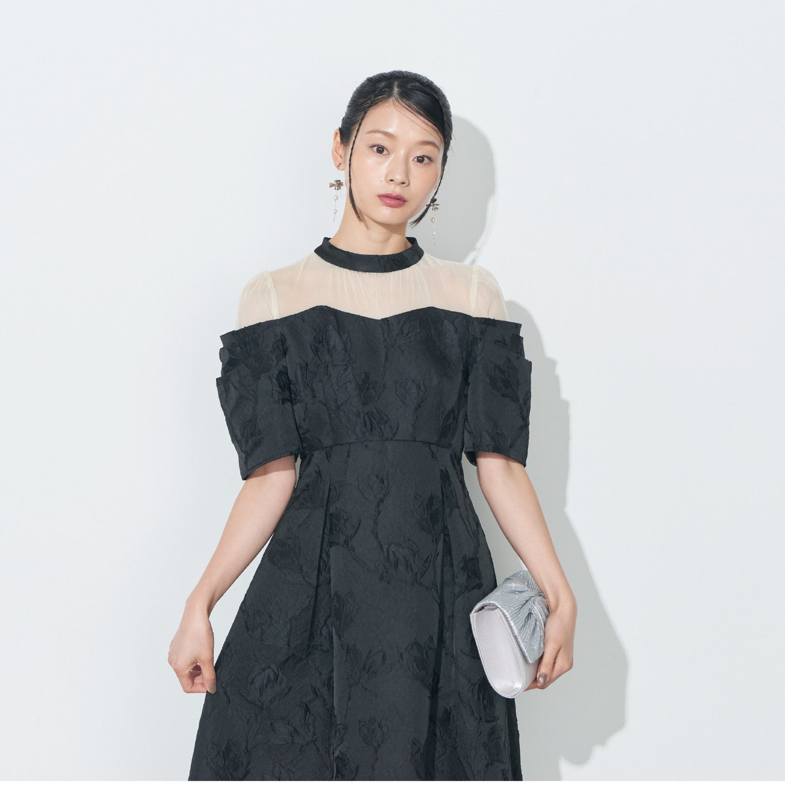 立体感のあるジャガードとシアー素材を組み合わせた上品な1着。