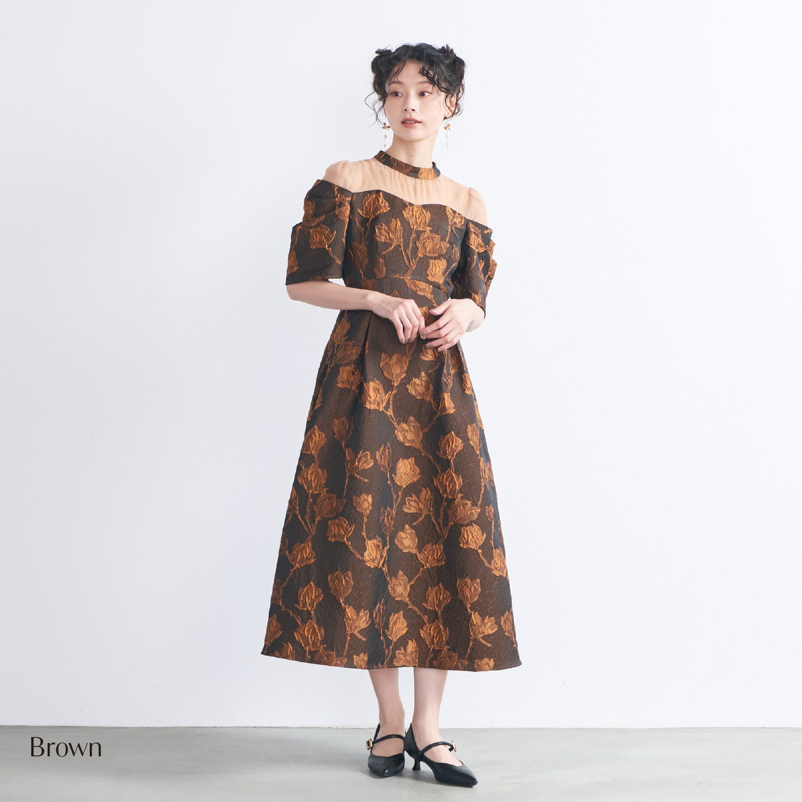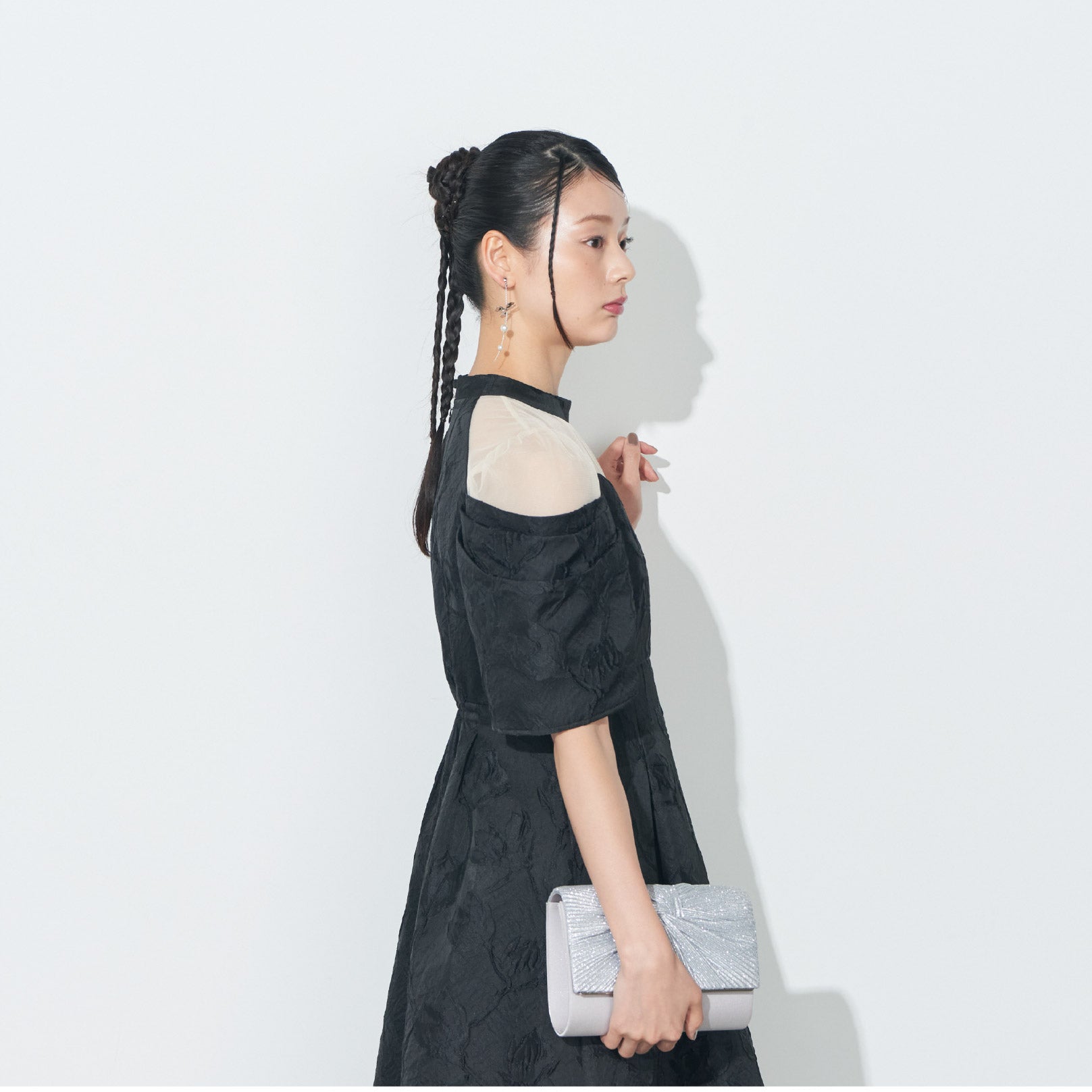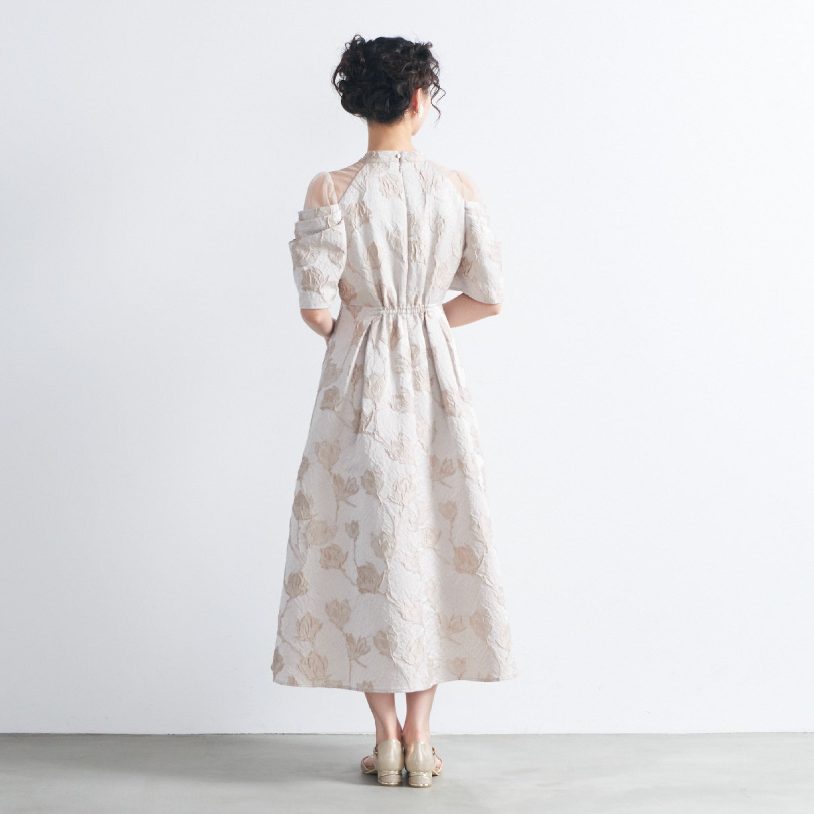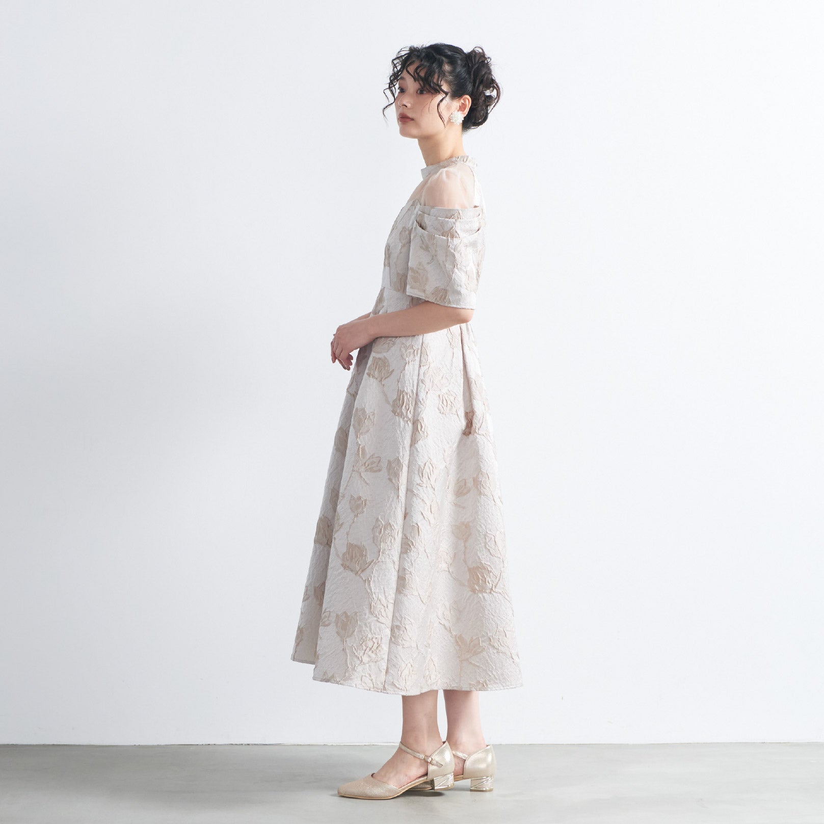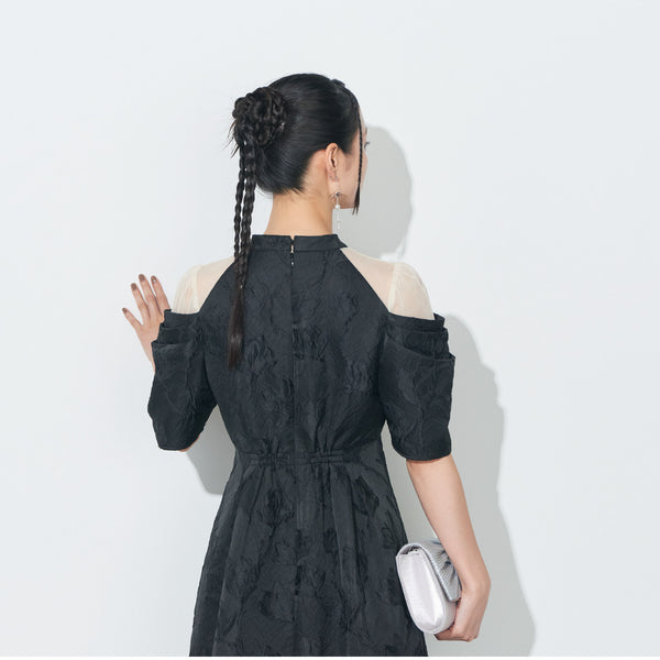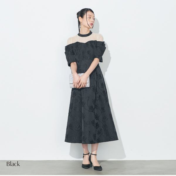 立体感のあるジャガードとシアー素材を組み合わせた上品な1着。