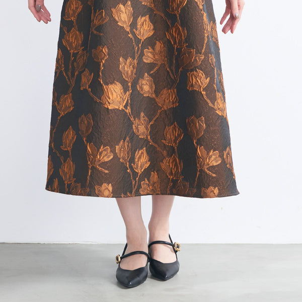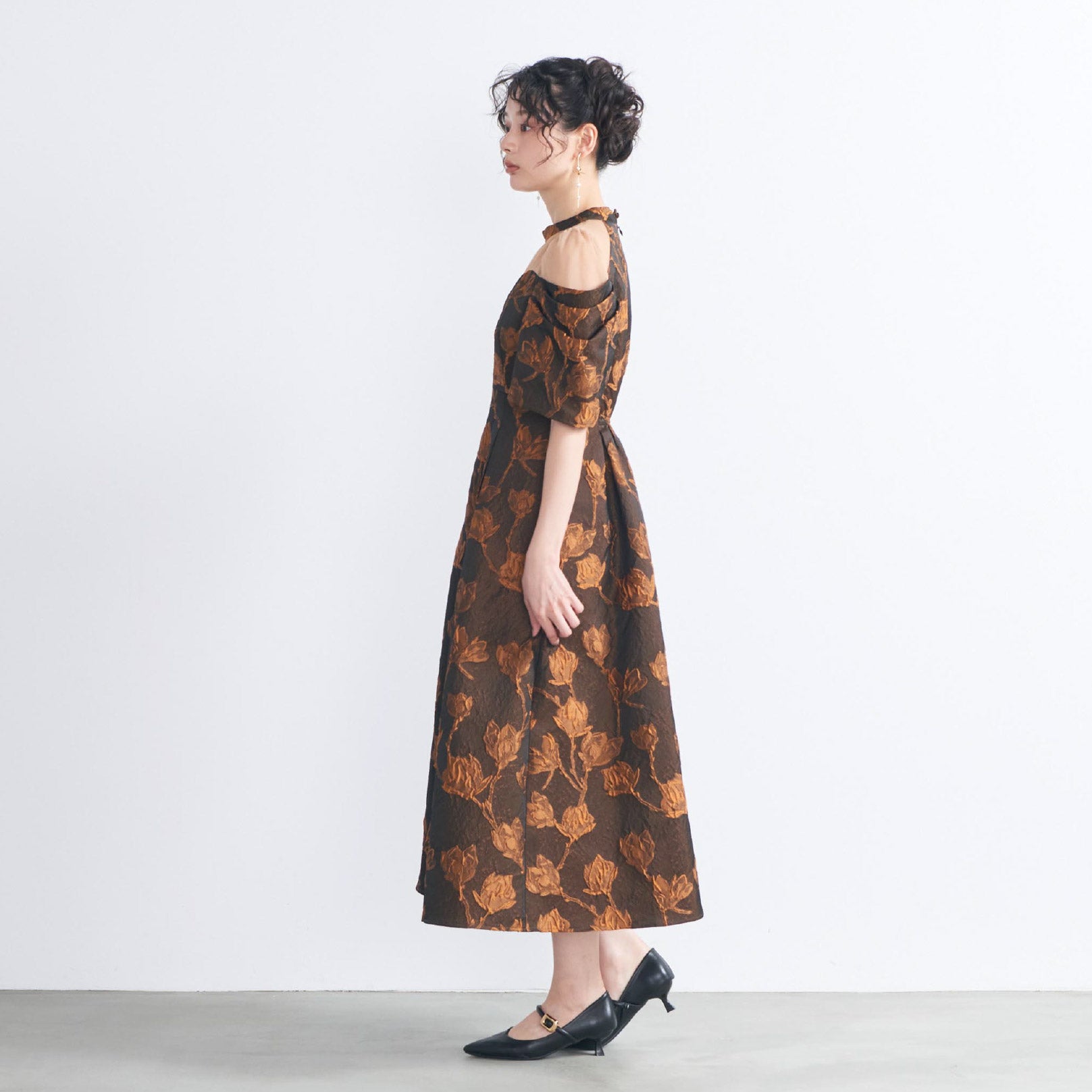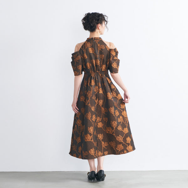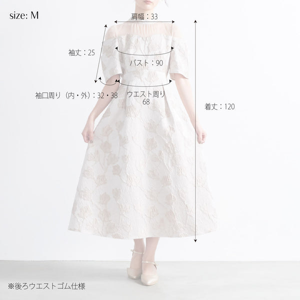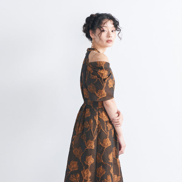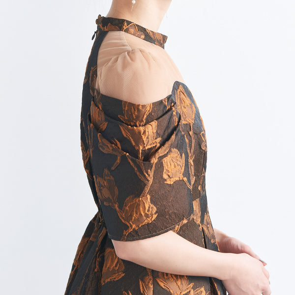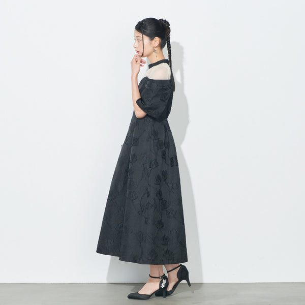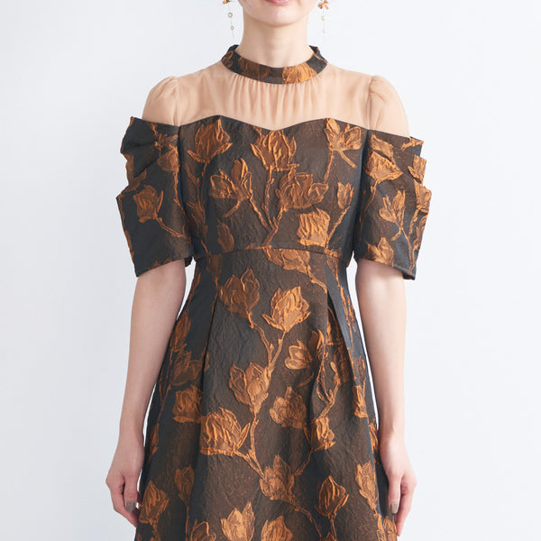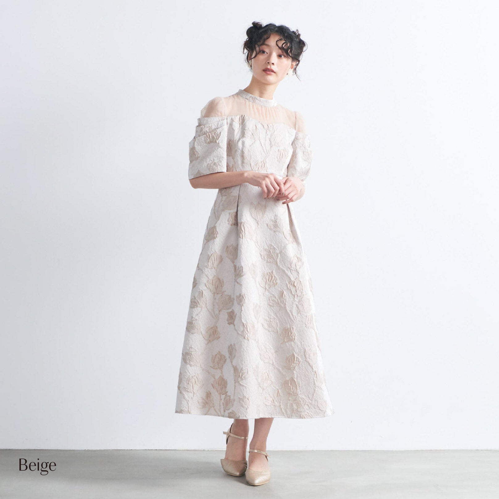 立体感のあるジャガードとシアー素材を組み合わせた上品な1着。