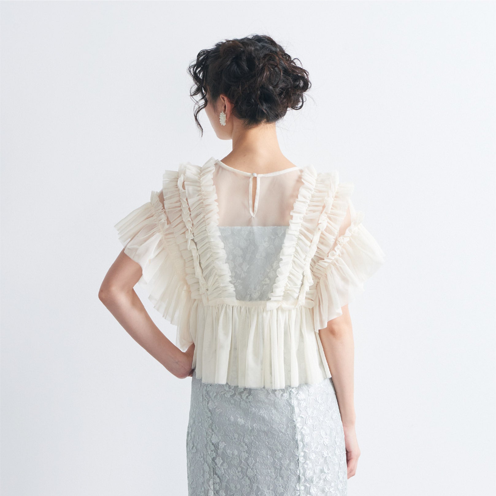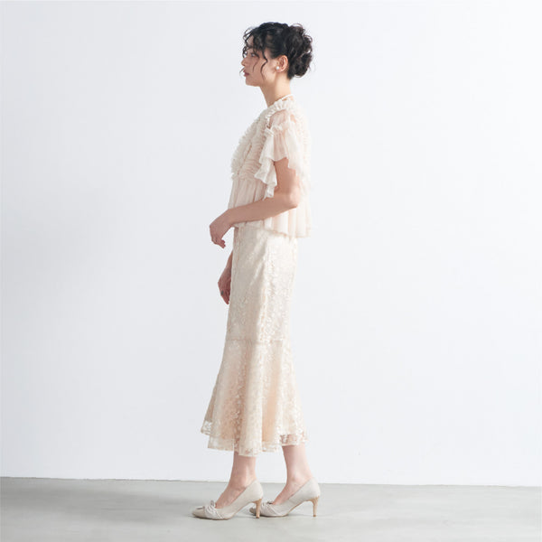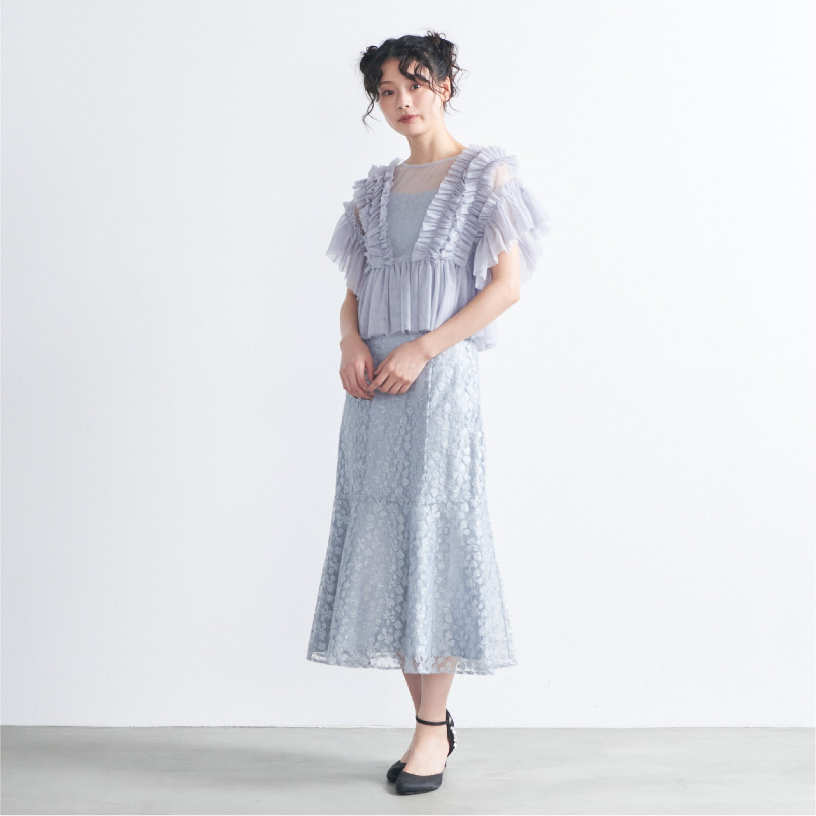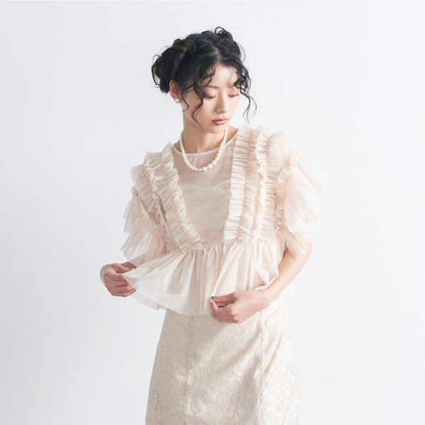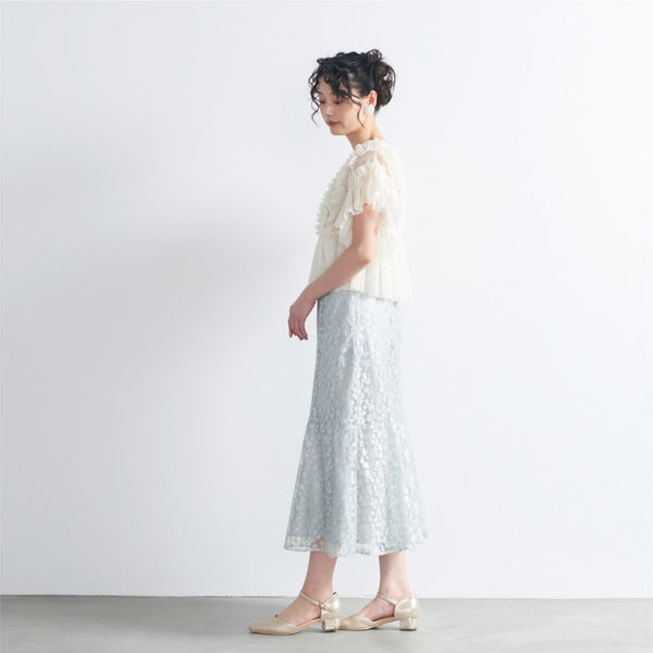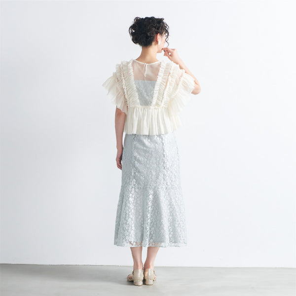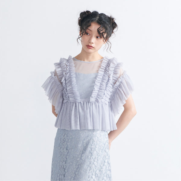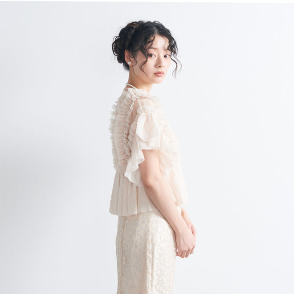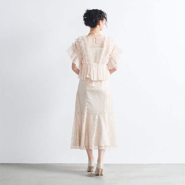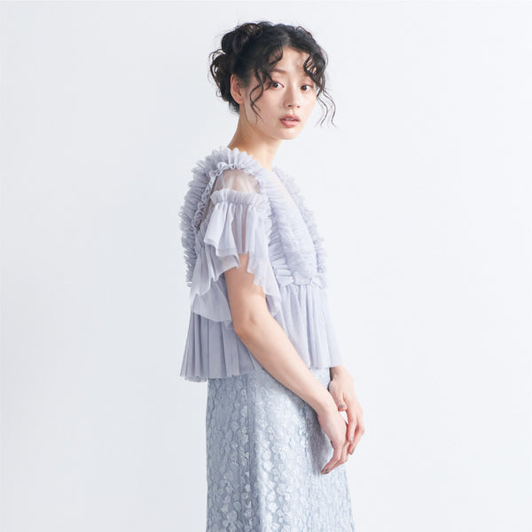 トップスは立体的なフリルをたっぷりとあしらい、華やかで存在感のあるデザインに仕上げました。