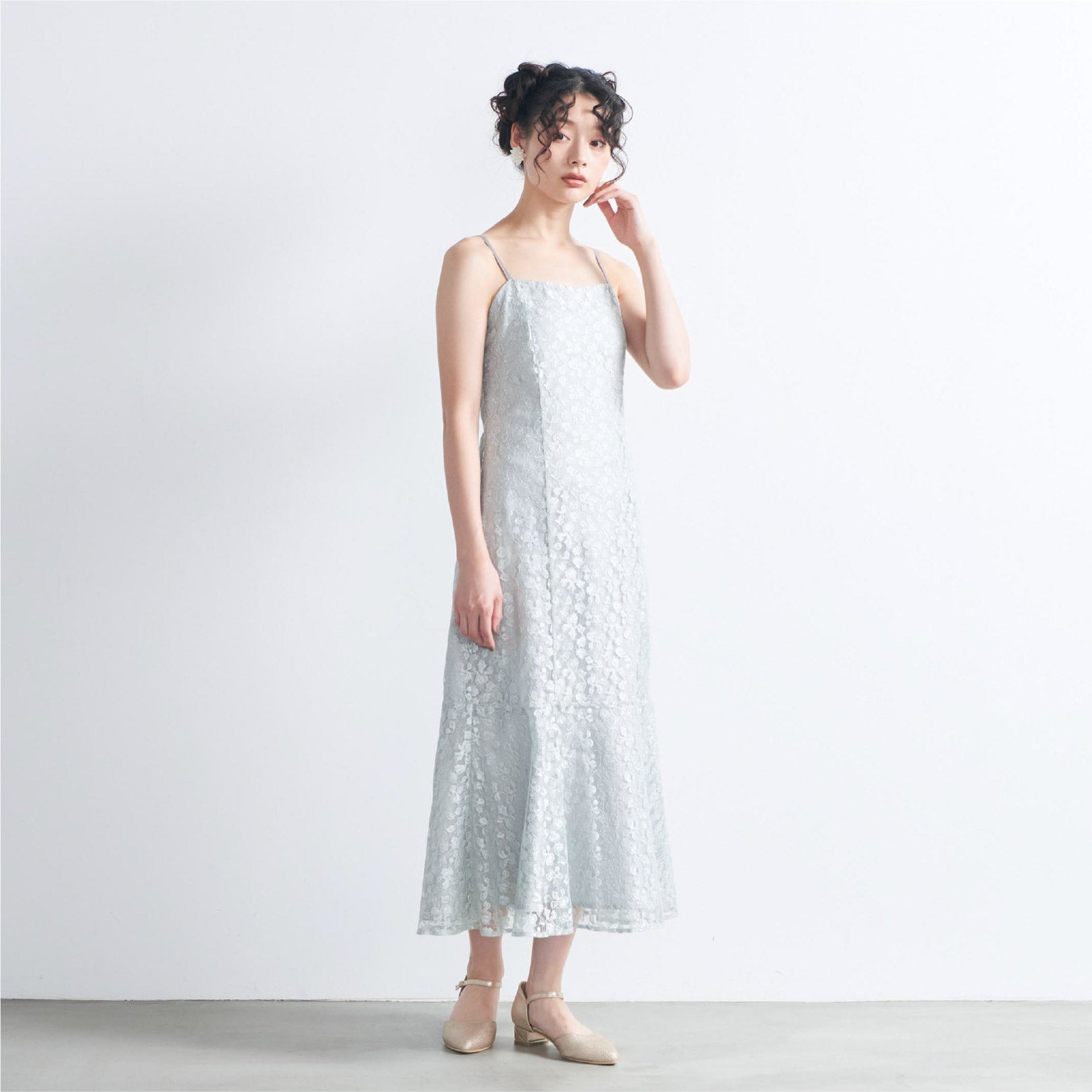 ドレスシルエットはマーメイドにすることで歩くたび柔らかく揺れ、女性らしさを演出。