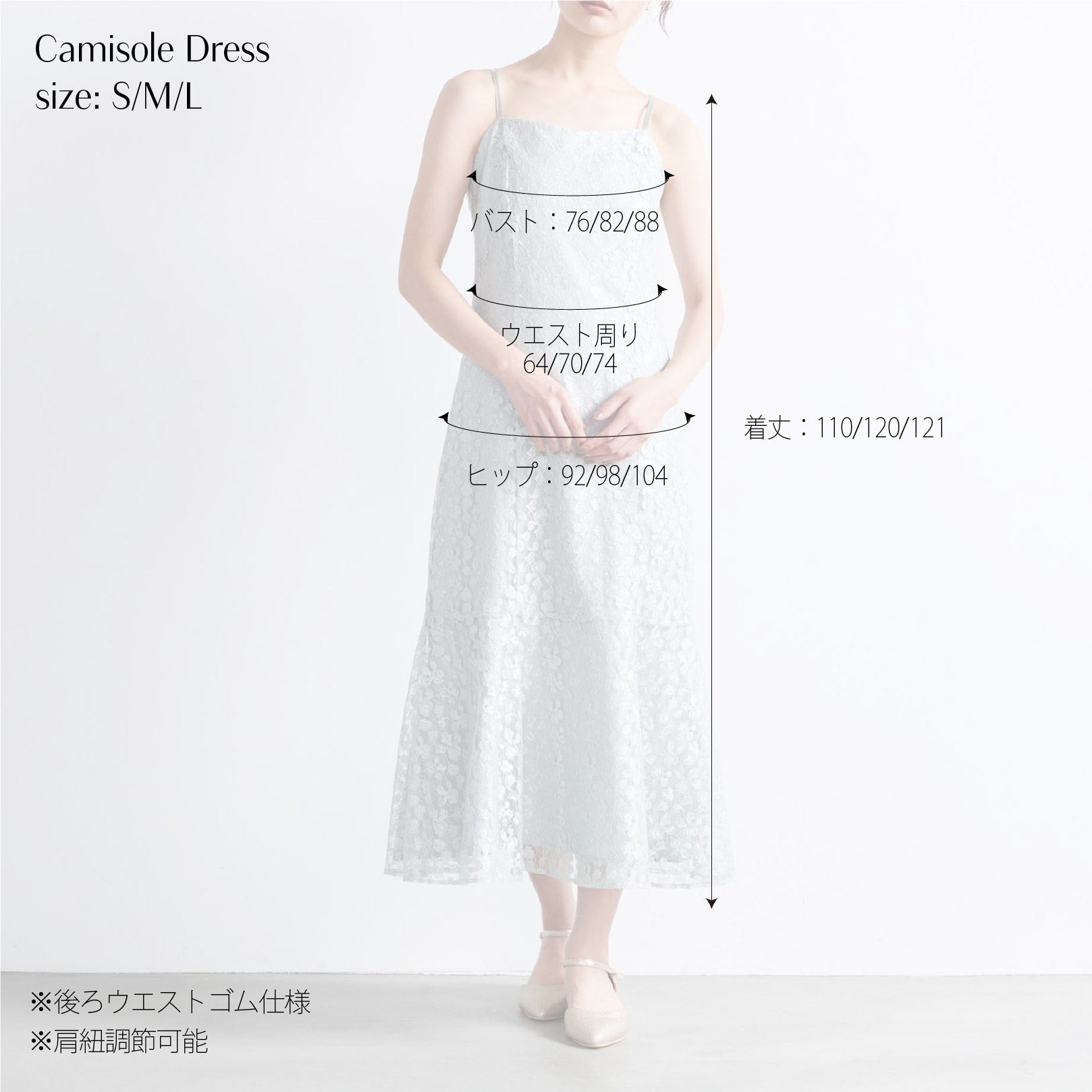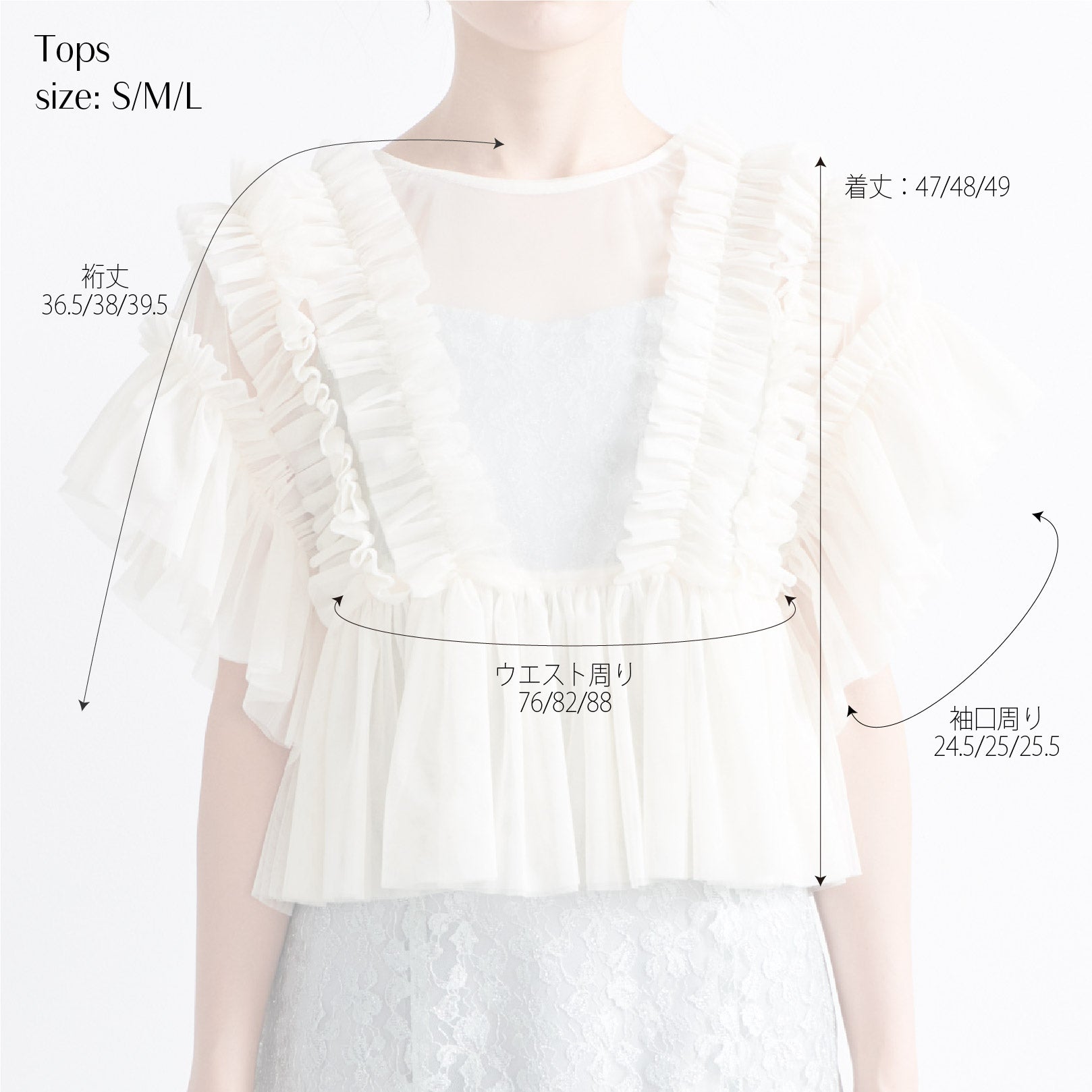| サイズ | 着丈 | バスト | ヒップ | ウエスト | 袖丈 |