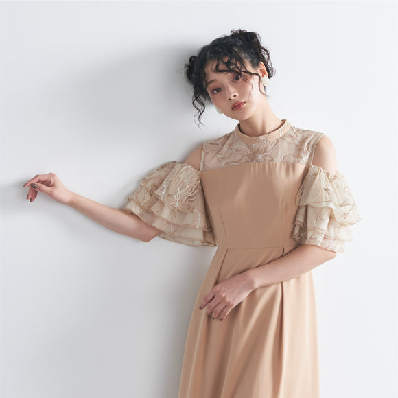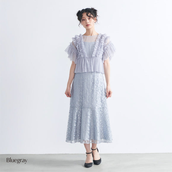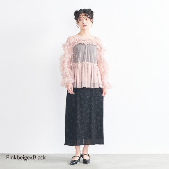 425-1010 チュールフリルブラウス×シャイニーキャミOP
