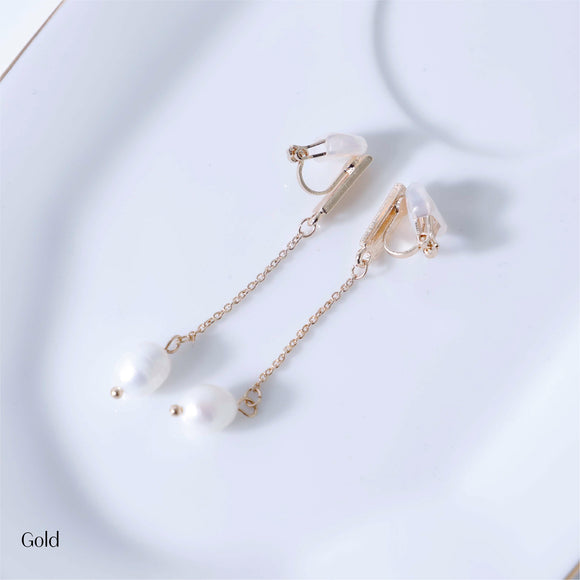 190253 メタル×淡水パールドロップイヤリング