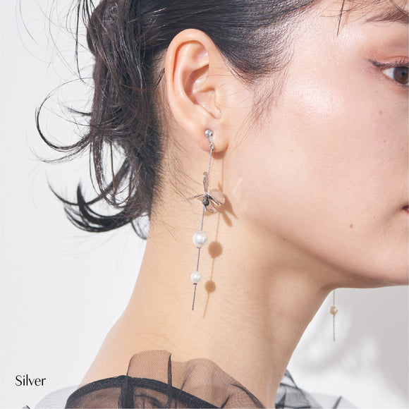 190243 メタリックフラワーパールイヤリング