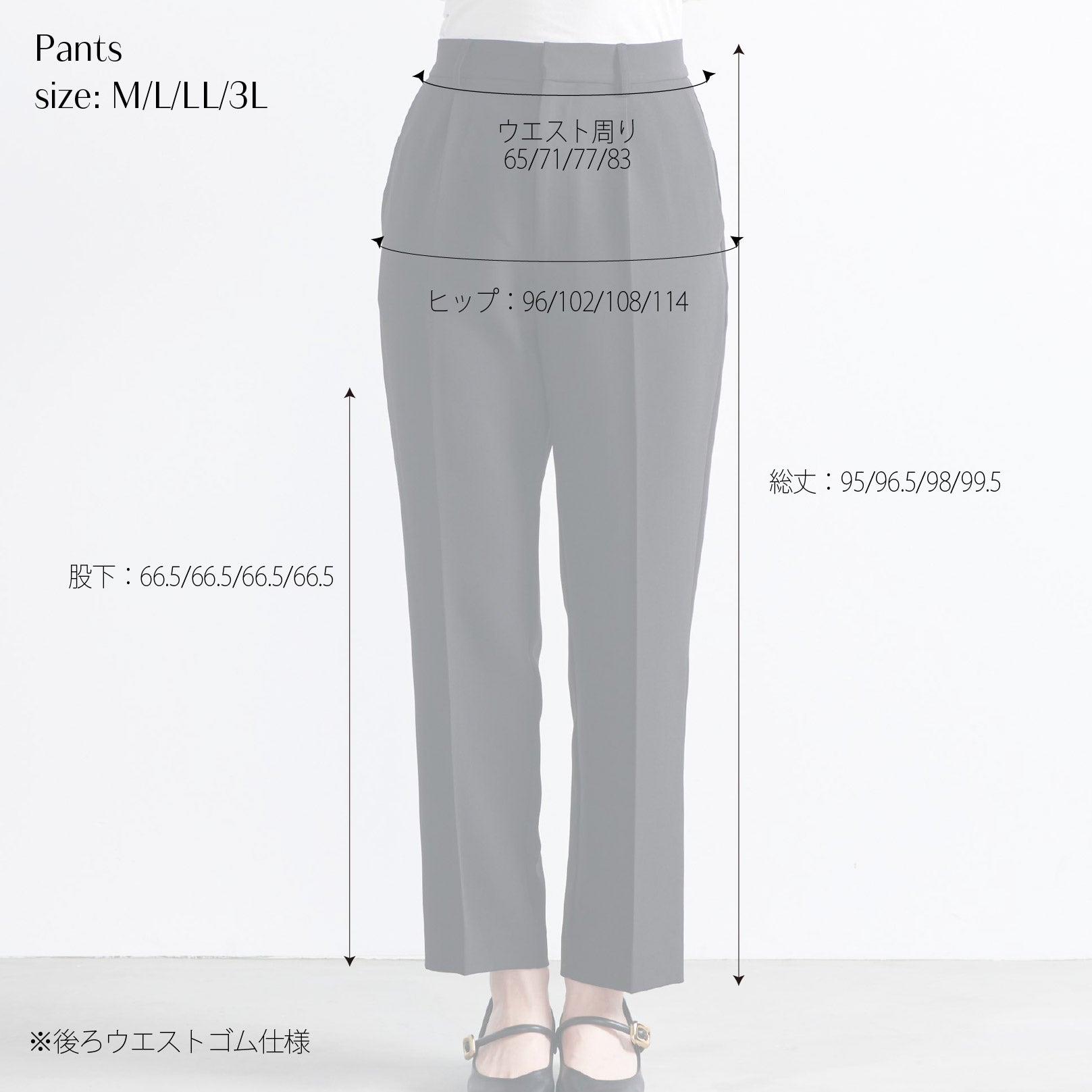 | サイズ | 着丈 (トップス) | バスト | ウエストゴム上り(パンツ) | ヒップ(パンツ) | 股上 / 股下 |