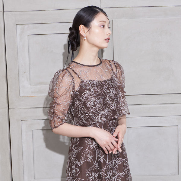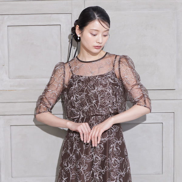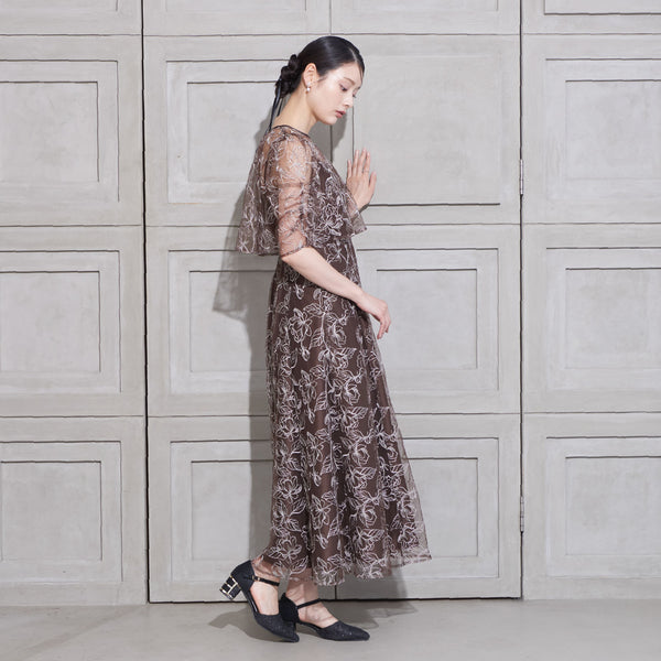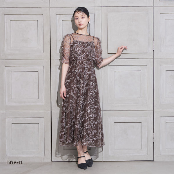 刺繍レースを贅沢に使ったレーヤードドレス。